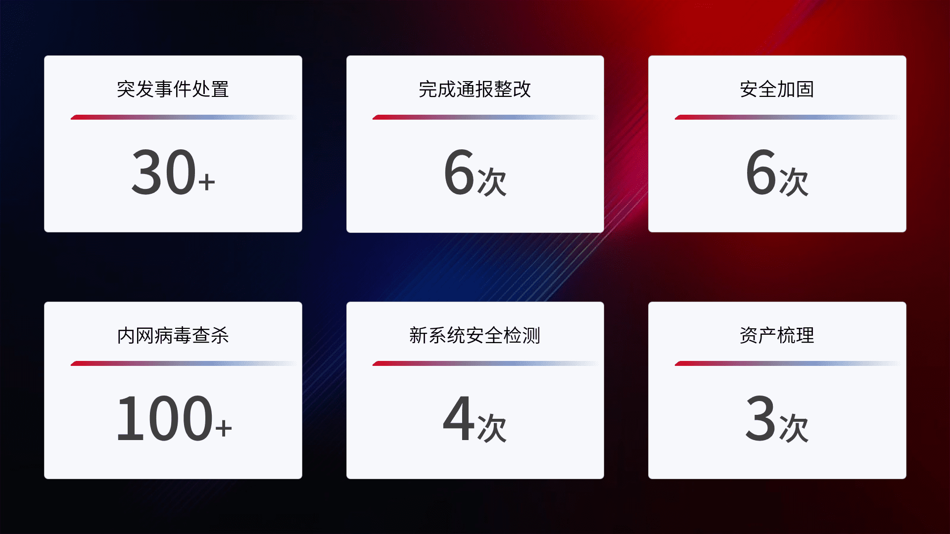 网络安全加固与风险管理:通过技术加固手段,,,,如加强区域隔离,,缩减攻击内网横向移动的范围;优化现有网络安全管理制度,,,降低网络威胁暴露面,,,,减少被黑客攻击的可能性。。