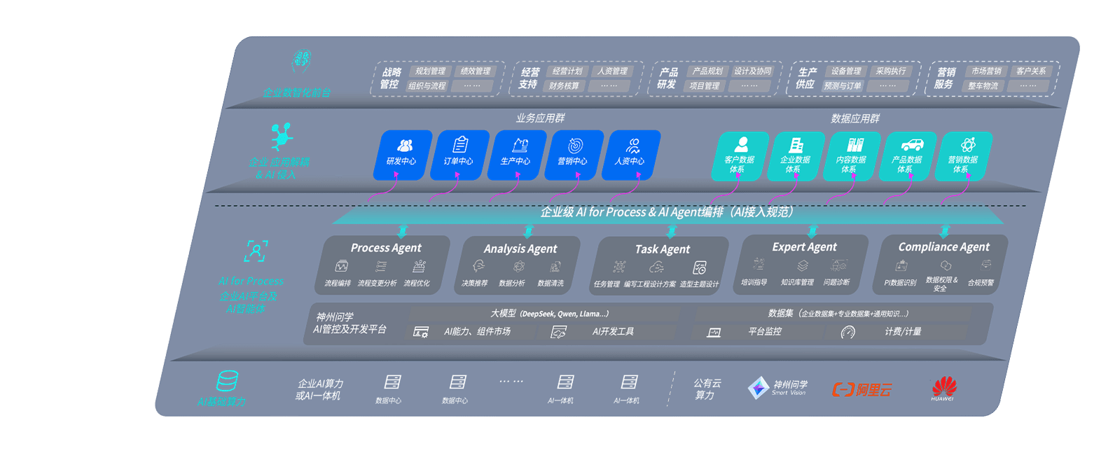 胜天国际问学智车解决方案是一套基于AI技术的汽车行业智能化系统,,覆盖从底层算力到顶层AI应用的全栈方案。。。方案由算力层、、、、模型层和应用层组成:算力层,,,方案支持多种一体机配置,,,具备云端灵活部署、、、多云适配以及动态优化计算资源的能力;模型层,,,,胜天国际问学平台版提供了企业级AI应用一站式构建与管理平台,,,,支持基于后训练强化技术的汽车企业专属模型的训练、、评测和运营;应用层,,胜天国际问学DeepSeek版提供包括超级员工、、、、智能招采、、、、智能营销、、智能客服、、、AI for BI等一系列解决方案,,,可助力汽车行业实现数字化转型,,,让管理更智能、、、响应更敏捷。。